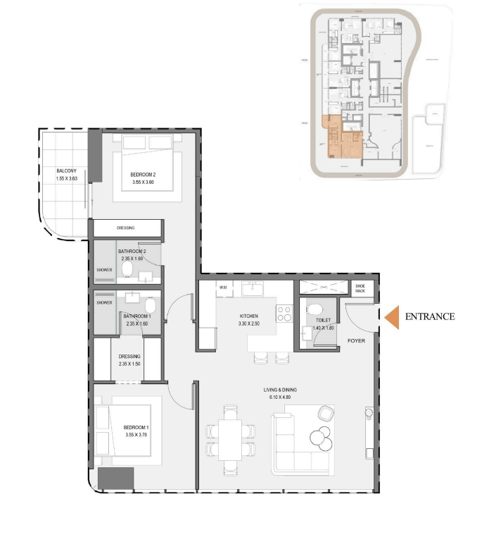 مترًا مربعًا إلى 135 مترًا مربعًاأنواع الشقق: