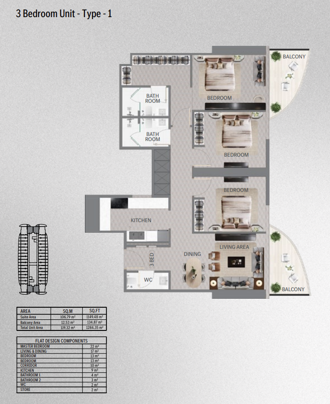 | Apartment TypeSize (m²)Starting Price | ||