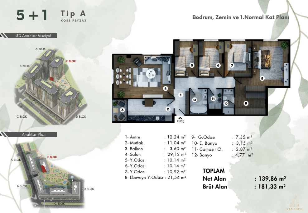 Available Apartments: 2+1, 3+1 , 4.5+1 , 5+1 , 4+2