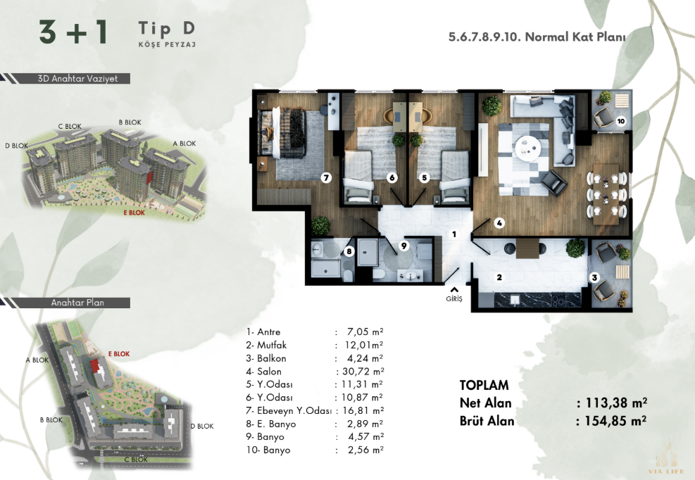 🏢 Via Life Eyüp is a fully integrated residential complex located in the rapidly developing Eyüpsultan district on Istanbul’s European side. The project boasts a strategic location very close to public transport networks such as metro and tram stations, facilitating fast access to business centers, shopping malls, and Istanbul’s main tourist areas.