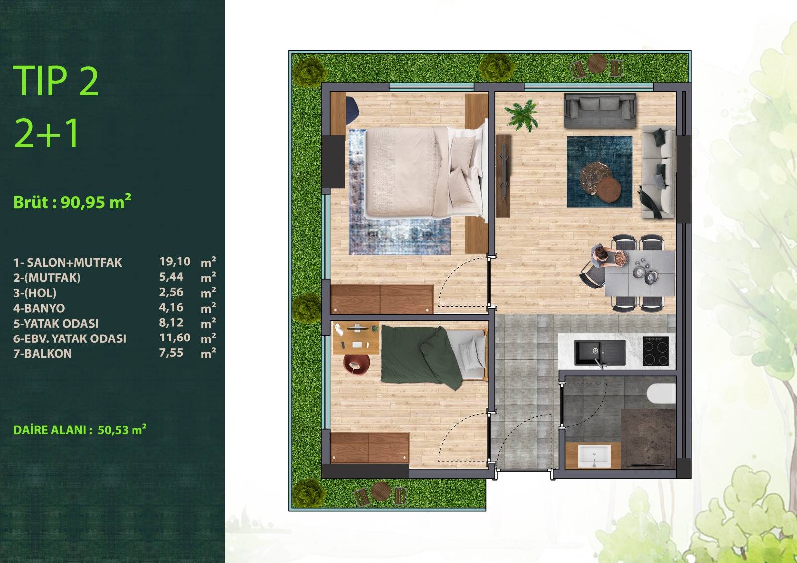✅ Kompakt dairelerden geniş aile dairelerine kadar farklı yaşam alanları.