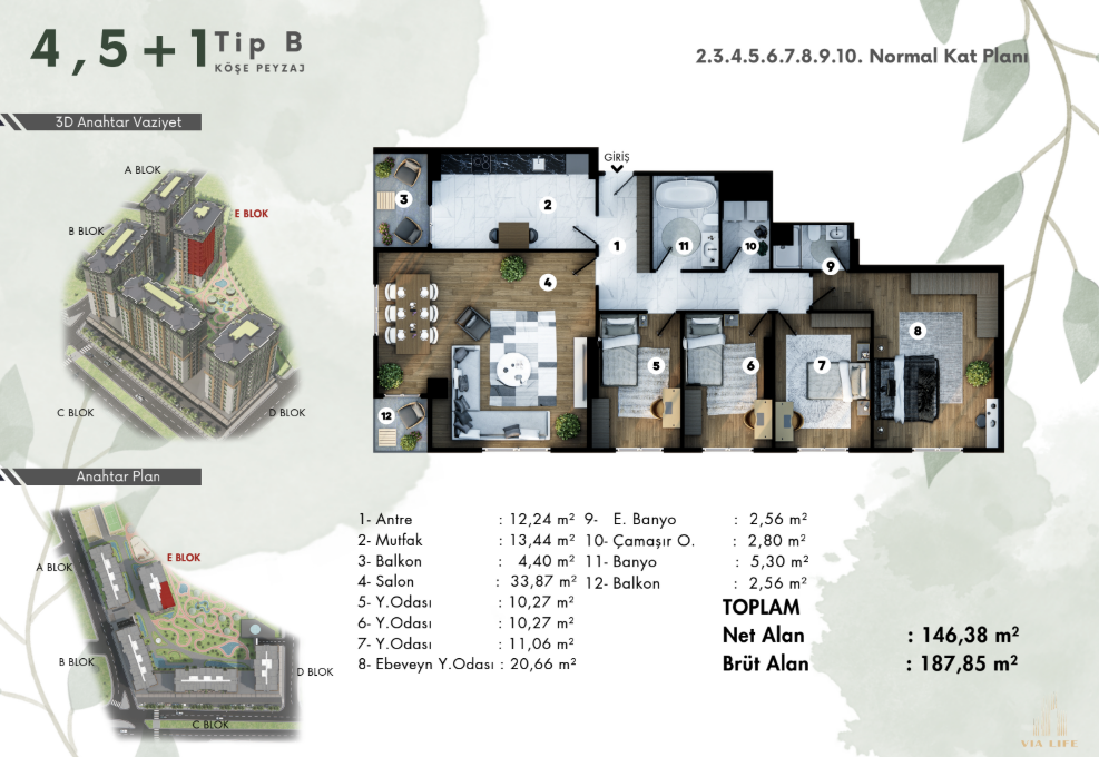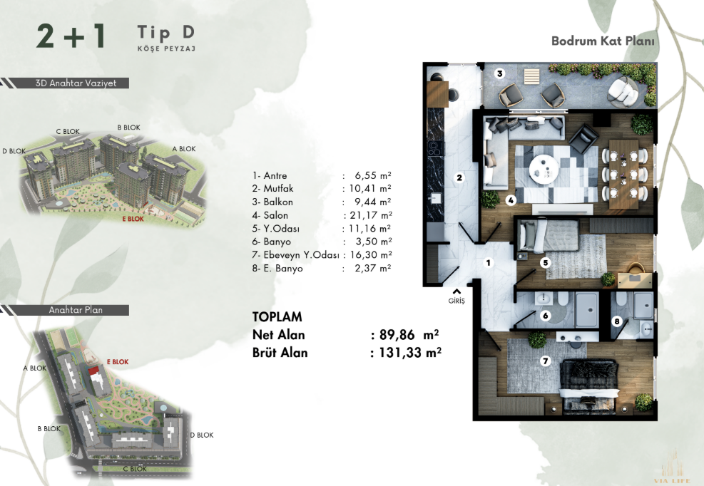 🏢 Via Life Eyüp, İstanbul Avrupa Yakası’nda hızla gelişen Eyüpsultan bölgesinde yer alan tam donanımlı bir konut kompleksidir. Proje, metro ve tramvay gibi toplu taşıma ağlarına çok yakın stratejik bir konuma sahip olup, iş merkezlerine, alışveriş merkezlerine ve İstanbul’un önemli turistik noktalarına hızlı ulaşım sağlar.